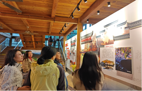 指南村依托深厚的文化底蕴和丰富的生态资源和绿色资源,大力发展生态民宿农家乐产业,乡村治理成效显著,成为宜居宜业和美乡村的典型,是全国民主法治示范村、全国乡村治理示范村和杭州市首批共富村名单。指南村的发展历程为习近平新时代中国特色社会主义在浙江的生动实践提供了鲜活的案例。老师们参观了乡村振兴实践中心、指南村史馆、走进村民家中,深入体会“绿水青山就是金山银山”的生态文明理念,了解指南村贯彻党的二十届三中全会精神推进乡村文化振兴的创新实践。