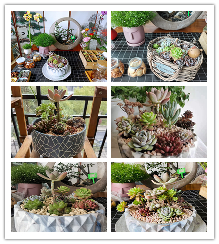 接着,老师们自己动手制作。大家精心设计着各式各样的盆栽,现场妙趣横生、欢声笑语不断,也留下了一张张精致的照片。