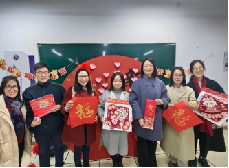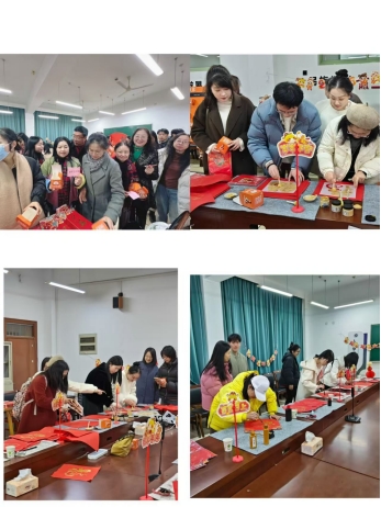 在剪窗花活动中,老师们耐心细致,用巧手剪出了各种迎春送福图样。