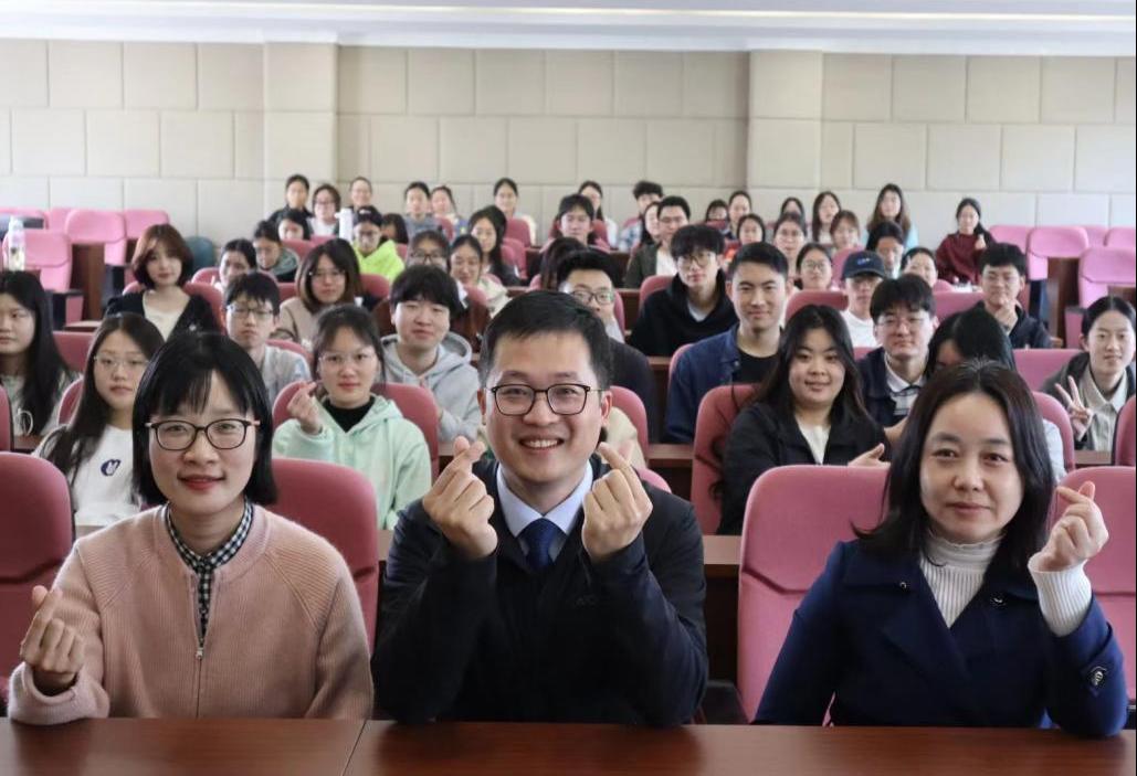随后,张大磊以“拥抱更好明天”为题,结合大学学习及工作经历,从自我认知、职业定位、城市选择、道德修养四个方面作了详细阐述。讲述如何打造有效的社会标签,用自身努力的确定性来应对形势的不确定;对于同学们关心的求职选择、就业城市选择等问题,他一一展示了行政事业单位、国有企业、民营企业等不同领域工作需要具备的知识背景和职业素养,并通过数据比对分析各类城市的发展前景;强调人生的选择与机遇相互影响,鼓励同学们尽早做好学业和职业规划,不断提高自身综合素质和就业竞争力,培养终身学习的能力。